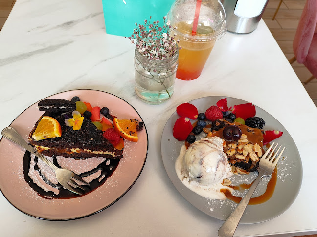 Fajnie miejsce na mapie Malborka, lokal odwiedziłam w niedziele i pomimo natężonego ruchu nie było problemu z wolnym stoliczkiem. Wystrój bardzo fajny, coś dla miłośników koloru różowego. Zamówiłam kawę late, była smaczna i nie było problemu z mlekiem bez laktozy, a to mało spotykane w Malborku. Gofr na deser był bardzo dobry, lokal proponuje szeroki wybór słodkości. Z tego co pamiętam kosztował około 14 złoty, a to bardzo niska cena jak za gofra z takimi dodatkami, a owoców było naprawdę dużo. Chłopak dał się namówić na babeczkę, która również była bardzo smaczna. Za rachunek dla dwojga (2 kawki i 2 desery) zapłaciliśmy około 50 złoty. Nic dodać nic ująć, oby więcej takich miejsc na mapie Malborka.